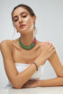 Semi precious stones beads in Ruby Peridot green and Amethyst Purple colors, a beautiful eye captivating article with sterling silver polki Kundan earrings is a must have piece for the season