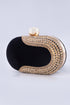 Introducing the Diamond and Stone Studded Oval Clutch, a sparkling masterpiece perfect for any occasion. This elegant clutch features a sleek, oval design adorned with dazzling diamonds and stones. It comes with a long sling chain for versatile styling and is finished with a unique burger-style knob and top button closure, combining luxury and functionality in one chic accessory.