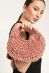 A dreamy moon-shaped clutch, sparkling with intricate beadwork from every angle.