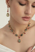 A one-of-its-kind necklace set featuring natural Prehnite ,Rose quartz, kemp stones, and silver foil polki. The natural stones showcase their own unique textures, ensuring that no two pieces are ever alike. A perfect blend of elegance and individuality — comes with matching earrings for a complete look.