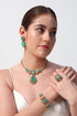 Exquisite dual-plated set in gold and Victorian finish, featuring moissanite polki kundan, doublet stones, and sparkling AD stones — paired with matching earrings and bracelet.