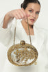 A tribute to nature’s raw elegance, this handcrafted brass clutch is adorned with natural mother-of-pearl, each piece uniquely patterned by nature itself. The crushed metal knob, with its hammered texture, adds a bold contrast — echoing the untamed beauty of the wild.