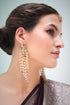 Elegant long earrings featuring pastel beads ,shell pearl and onyx hangings, topped with classic Kundan and kemp stones for a graceful, timeless charm.