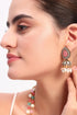 A timeless pair of Victorian-plated jhumkas, adorned with semi-precious doublet stones and shimmering moissanite kundan — elegance meets heritage in every detail.
