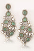 A bold expression of eleganceโ€”these statement earrings in Victorian plating feature moissanite kundan and pastel green doublet stones, bringing vintage charm with a modern twist.