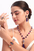 Featuring a striking purple doublet stone centerpiece with natural onyx beads, this elegant long set adds a touch of sophistication. Perfect for statement styling!