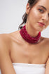 A rich fusion of deep ruby-hued semi-precious beads woven into layers to create a stunning choker. Designed to turn heads and radiate regal charm — a true statement of bold sophistication.