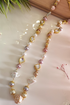 A stunning handcrafted mala featuring a blend of baroque pearls, shell pearls, meenakari beads, and Kundan work — all brought together in soothing pastel tones and multi-colored pearls. A graceful piece that radiates charm and royalty.
