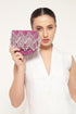 A stunning blend of beads and pearls, this clutch is finished with sparkling crystal bead hangings that move with elegance.